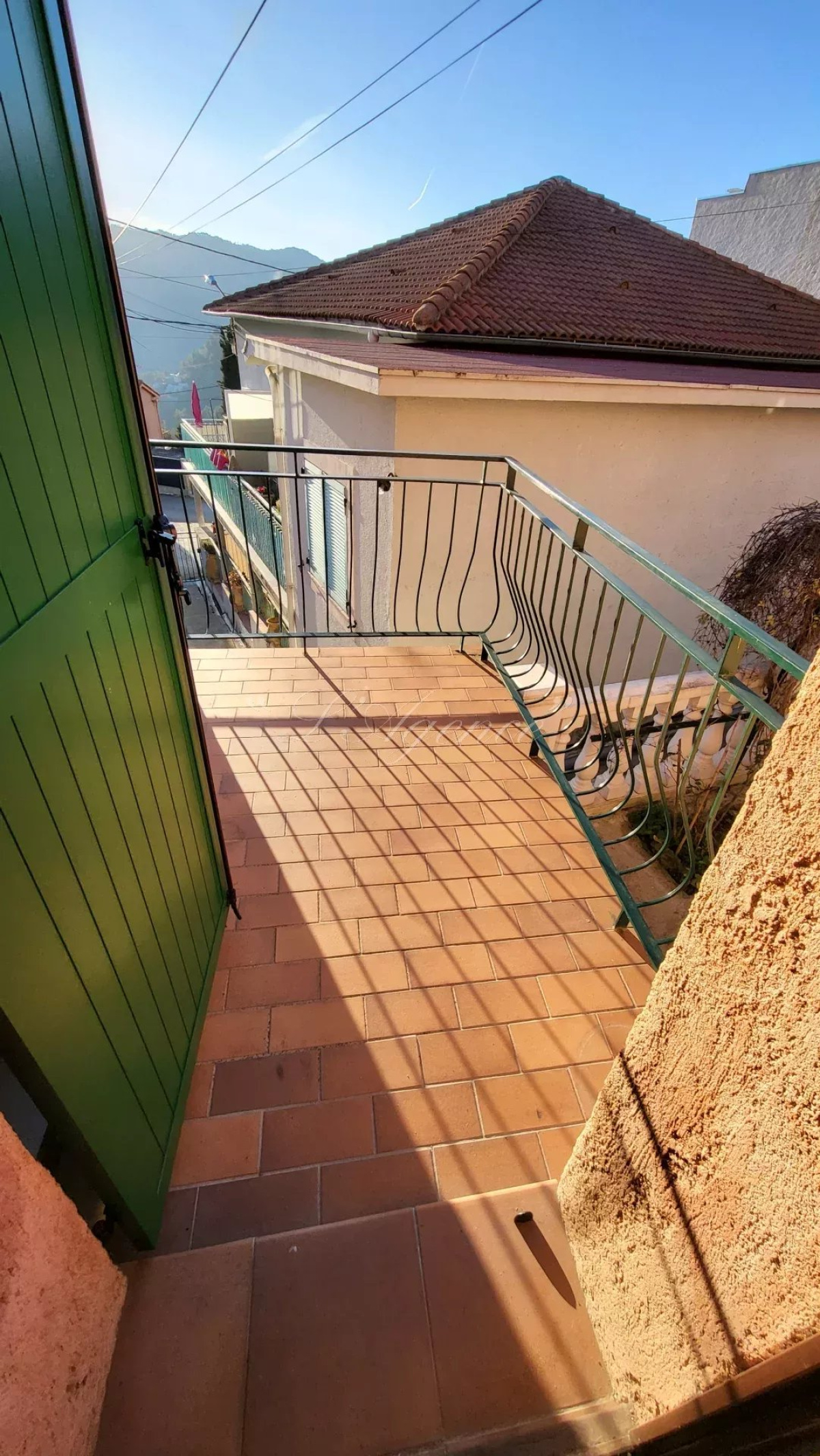 Dans une petite maison individuelle, charmant studio comprenant une belle pièce de vie avec un coin cuisine, donnant sur un balcon avec une jolie vue dégagée sur la vallée.